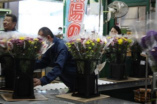 のぼり旗の贈呈がセレモニーの最後を飾り、シーミー花セリが威勢の良い掛け声とともに開始されました。
