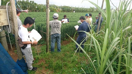 忙しい中ですがほぼ全員が集まり熱心に品種ごとの生育状況を