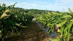 ドラゴンフルーツの花。(サボテン科のヒモサボテン(ヒロケレウス)属)
