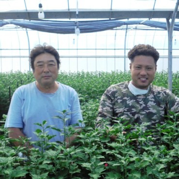 > 真栄田昇さん・耕太さんースプレー菊